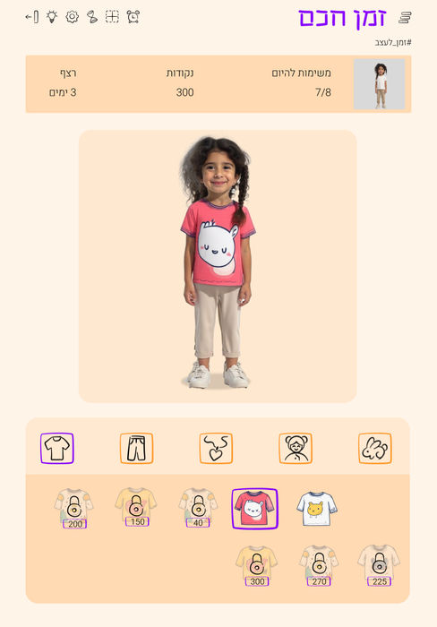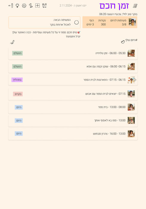 המטרה: לעזור לילדים בגילאי בית הספר היסודי, לתכנן, לארגן ובעיקר לנהל את הזמן שלהם.